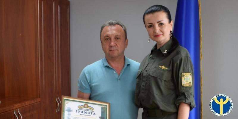 Грамотою Азово-Чорноморського регіонального управління Держприкордонслужби за особистий внесок у справу захисту інтересів держави на кордоні, активну участь у військово-патріотичному вихованні молоді, особисту мужність та активну громадську діяльність нагороджено Євгенія Єрашова, керівника Херсонської обласної служби зайнятості.