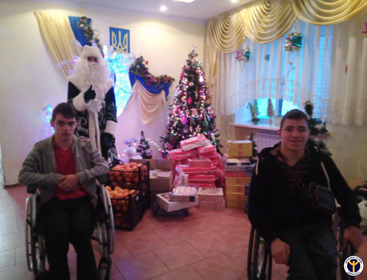 Традиційно в день цього чудового свята фахівці Херсонського обласного центру зайнятості відвідують комунальний заклад Херсонської обласної ради «Олешківський будинок-інтернат». Цей рік не став виключенням, адже вихованці інтернату завжди з нетерпінням чекають на новорічні чарівні свята, бо це пора чудес, веселощів і подарунків.