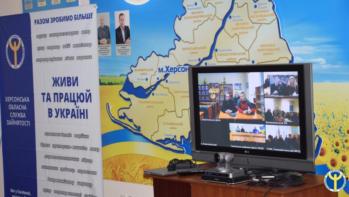 09 грудня в приміщенні Херсонського міського центру зайнятості за допомогою засобу відеозв’язку відбулась зустріч шукачів роботи Бериславського, Голопристанського, Нижньосірогозького, Новотроїцького, Генічеського Високопільського районів області, а також м. Херсона зацікавлених у працевлаштуванні в Національній поліції України з уповноваженим представником управління кадрового забезпечення Головного управління Національної поліції в Херсонській області. Загалом у відео-зустрічі взяли участь 75 шукачів роботи.