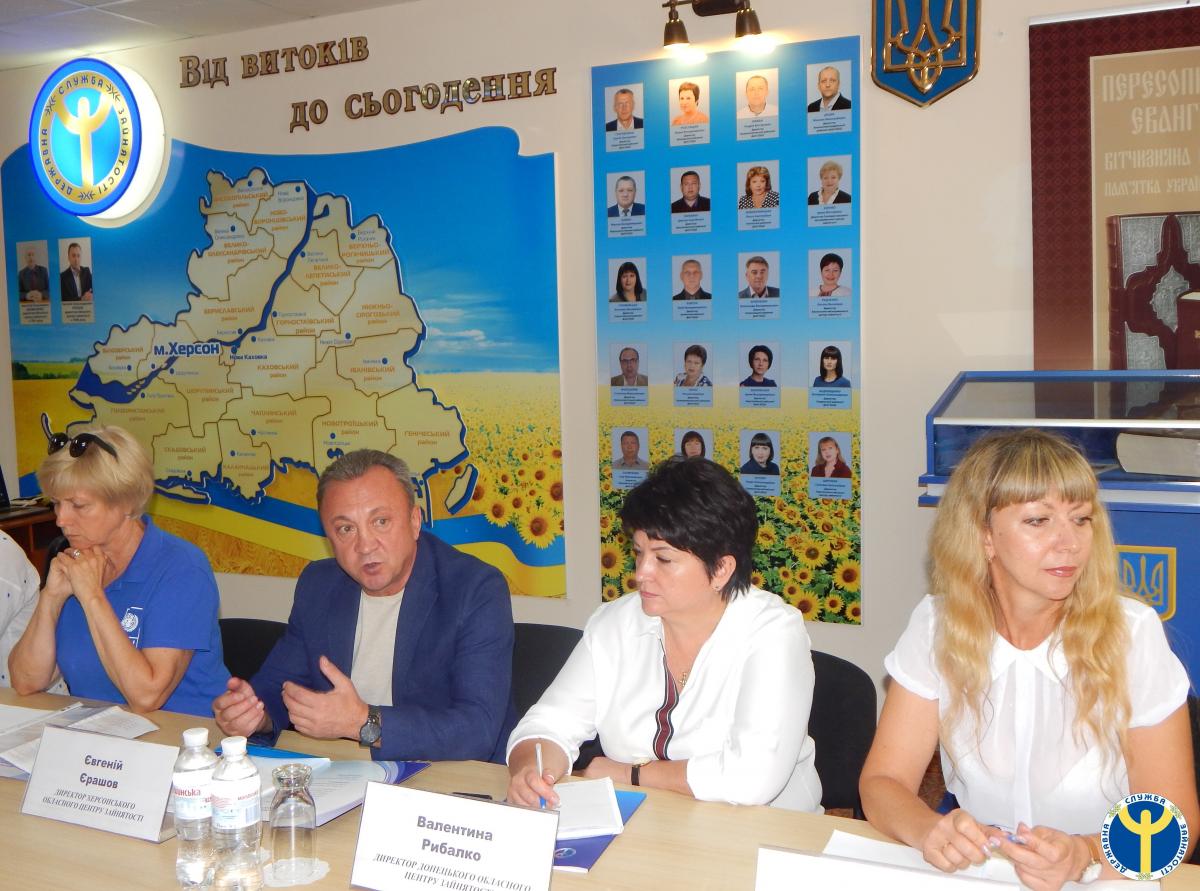 Розпочав захід директор Херсонського обласного центру зайнятості Євгеній Єрашов, зазначивши: «Сьогодні ринок праці Херсонщини, в тому числі й міста Херсона, стрімкий та динамічний, його, в більшості, формують підприємці, які належать до малого та середнього бізнесу. Отже, сьогодні, ми ділимося нашим досвідом роботи у співпраці обласної служби зайнятості з соціальними партнерами, що направлений на підтримку, становлення та розвиток малого та середнього підприємництва».