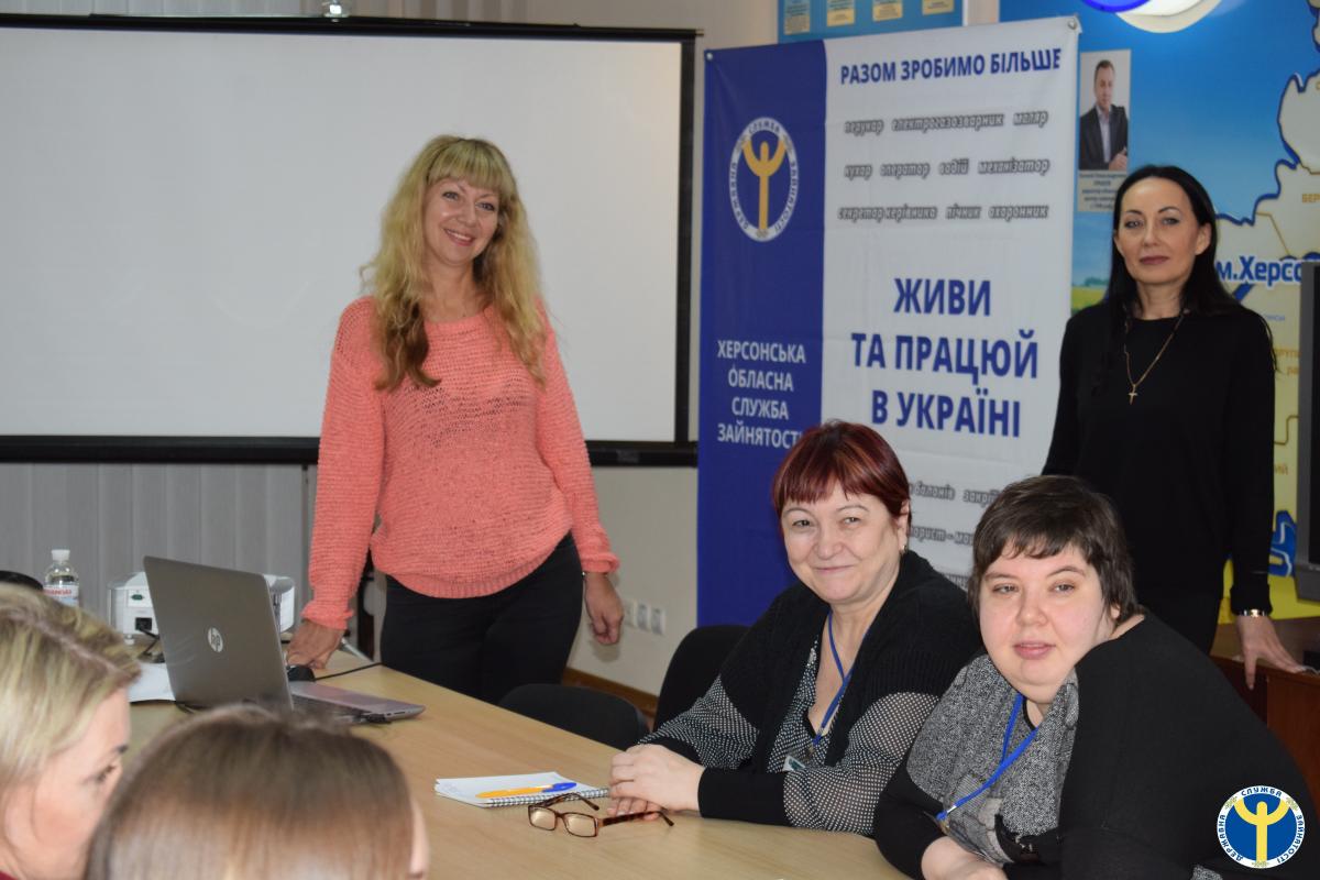 Навчання проводять заступниця директора Херсонського обласного центру зайнятості Наталія Португальська та начальниця відділу організації надання послуг роботодавцям Наталія Лєсна.