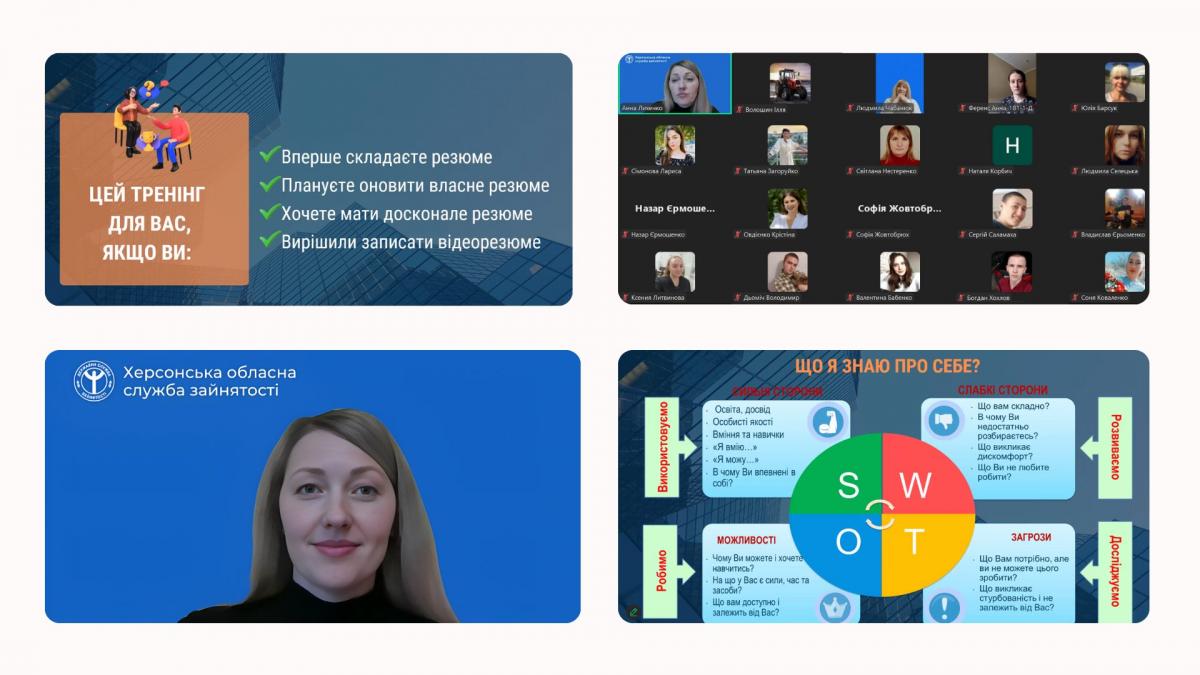 давця! Саме тому вони активно долучилися до онлайн-тренінгу "Резюме, що працює: створюємо крок до успіху", проведеного Ганною Лихенко - психологинею та профорієнтаторкою Херсонського обласного центру зайнятості.