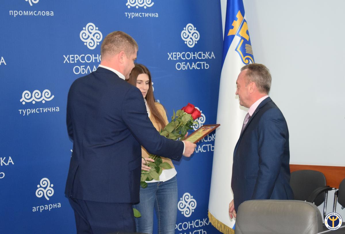У рамках роботи заходу перший заступник голови Херсонської обласної державної адміністрації Андрій Шибаєв привітав Євгенія Єрашова з річницею створення Державної служби зайнятості та вручив Почесну Грамоту голови ХОДА за багаторічну сумлінну працю, високий професіоналізм, вагомий особистий внесок у реалізацію державної політики з питань зайнятості.