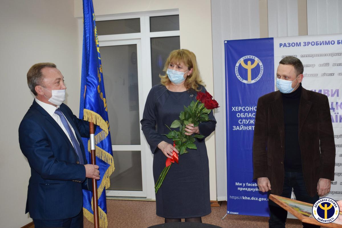 Під час наради традиційно перехідним прапором було відзначено кращий колектив Херсонської обласної служби зайнятості за підсумками 2020 року. Нагороду отримав колектив Херсонського міського центру зайнятості.